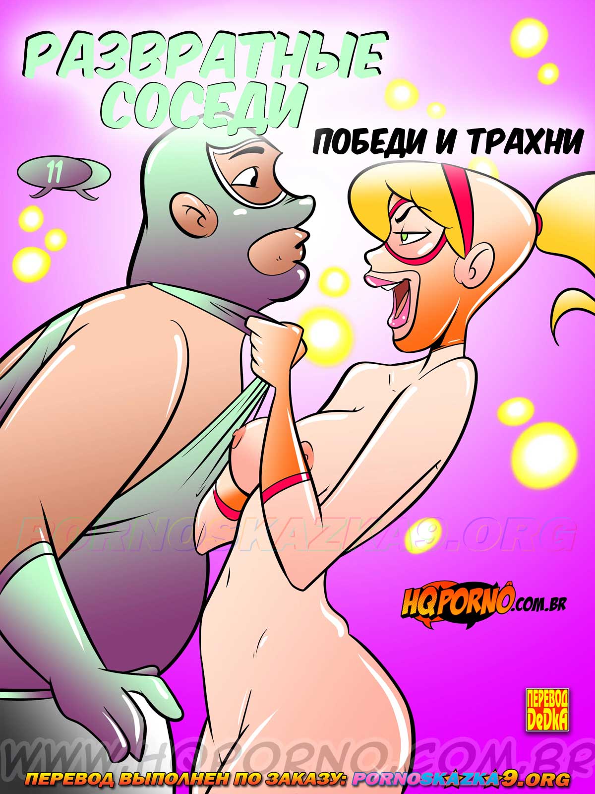 Порно комикс «Развратные соседи. Часть 11. Победи и трахни.» Переключая каналы телевидения, Гордо находит шоу о борьбе между...